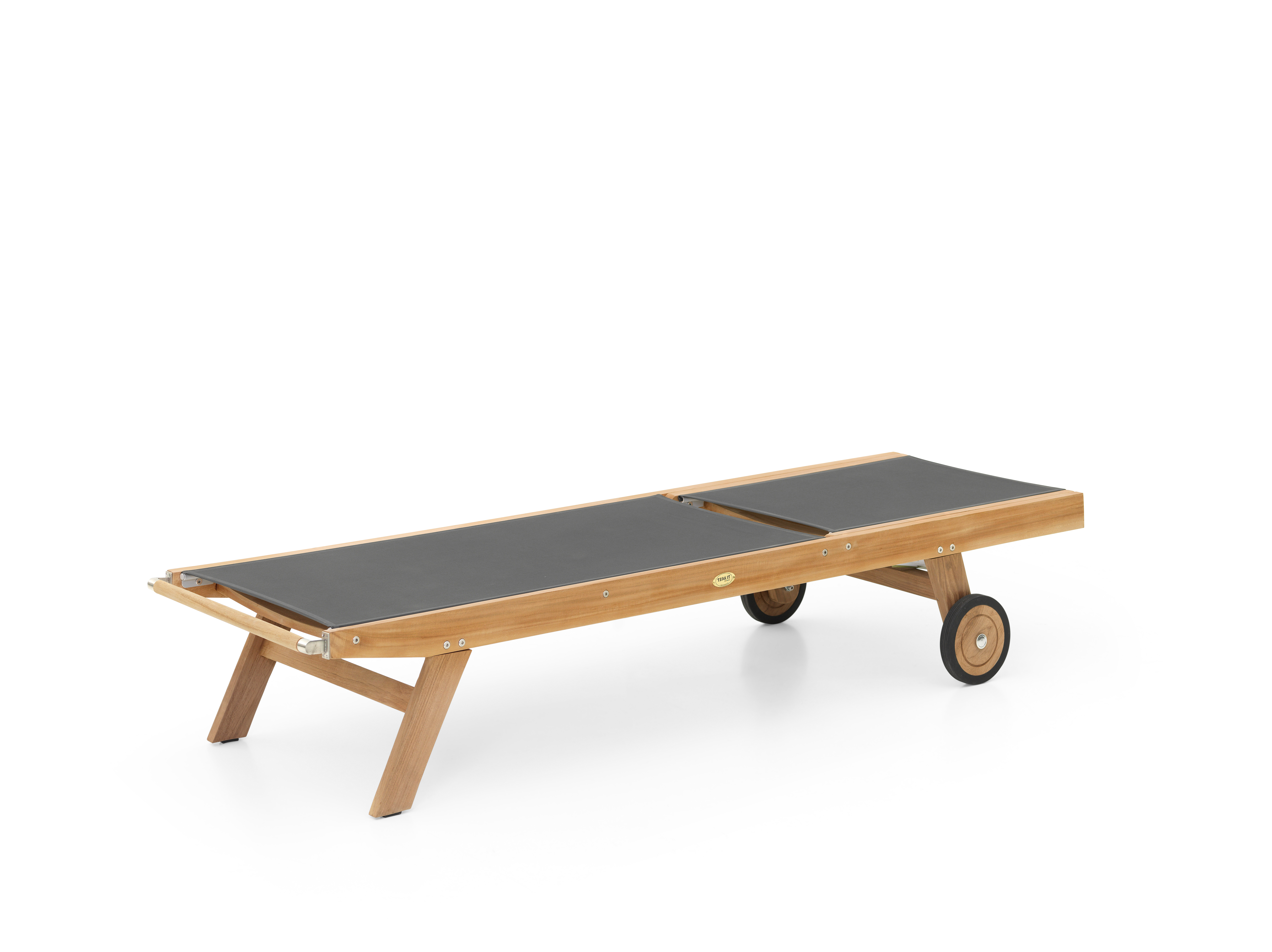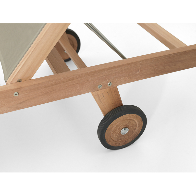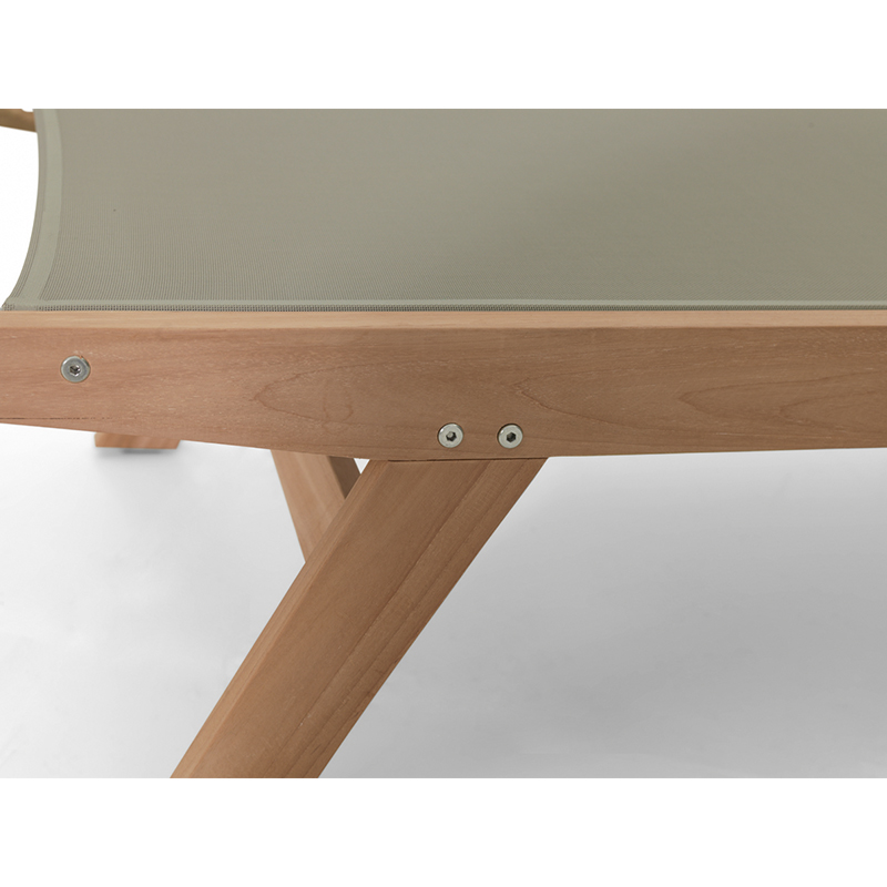 Moderne Teak-Liege mit einem hochwertigen Batyline-Bezug