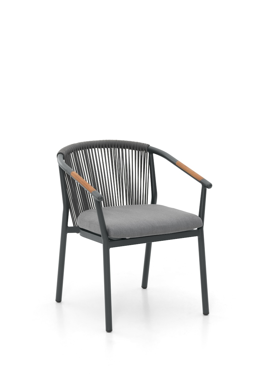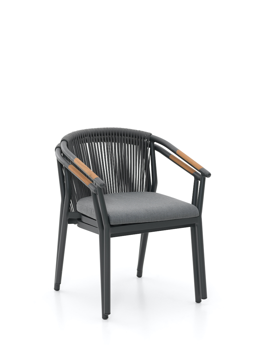 Moderner Stapelsessel aus Aluminium kombiniert mit hochwertigen Seil/Rope Geflecht